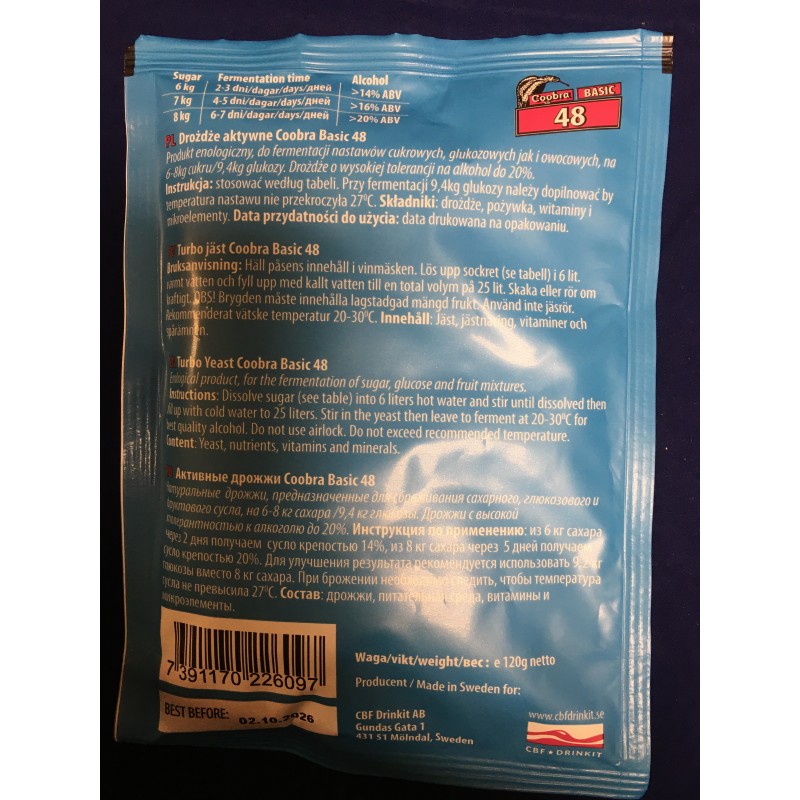 Drożdże Coobra Basic to nowoczesna linia drożdży, wyprodukowana w Wielkiej Brytanii. Łączy w sobie wysoką skuteczność fermentacji, „czystszy smak” i przystępną cenę.