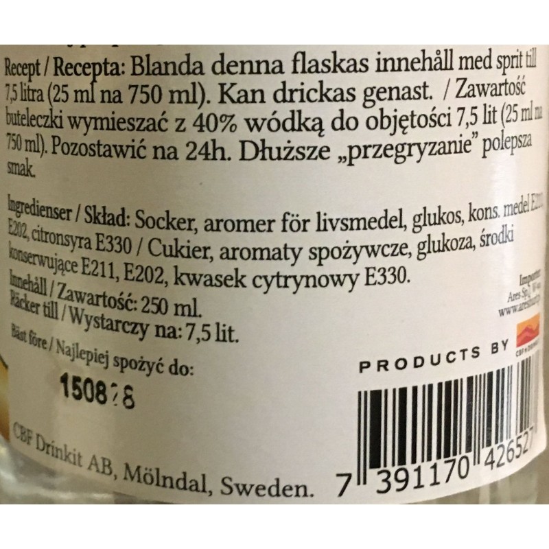 Zawartość buteleczki dodać do 7,5l wódki 40-60%,dodać 1-2 łyżeczki cukru, odstawić na 24h i gotowe.