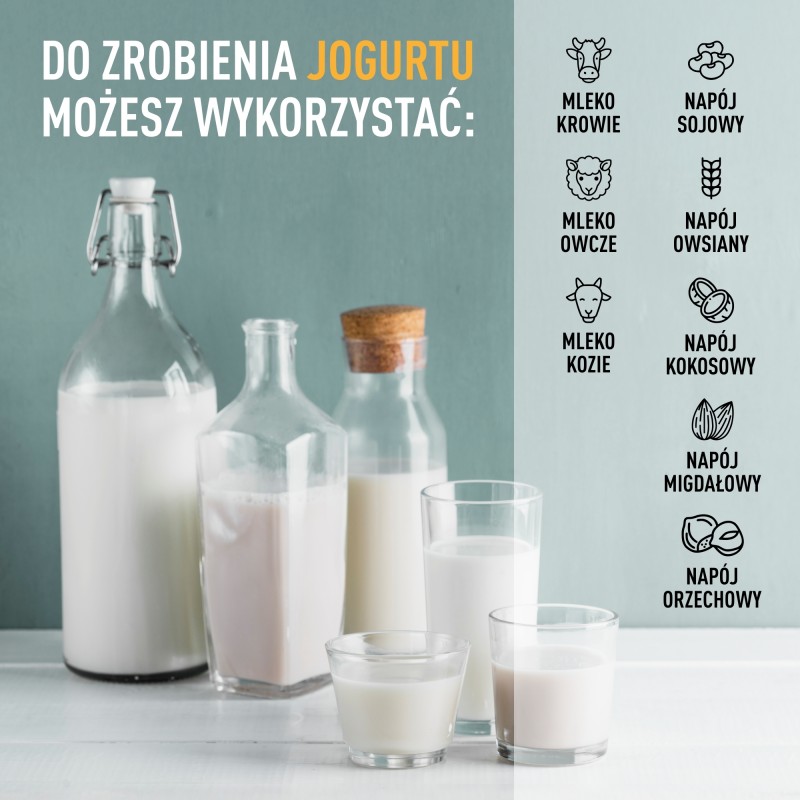 Jogurtownica to wspaniały pomysł na prezent, również dla tych, którzy od mleka krowiego wolą mleko kozie, owcze lub napoje roślinne - kokosowe, sojowe czy migdałowe. Na ich bazie również przygotujesz pyszne, wegańskie jogurty!